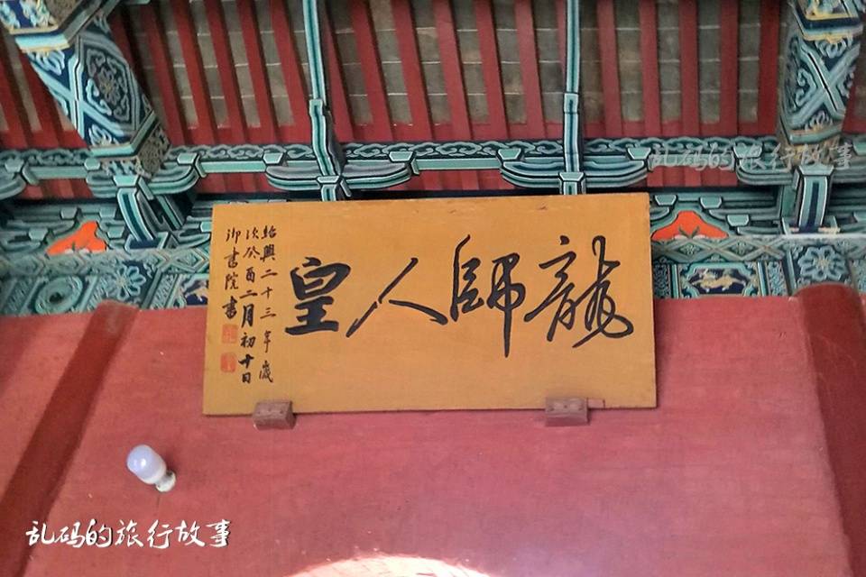 龙是中华民族的象征,伏羲被尊称为龙师人皇,炎黄二帝也对其顶礼膜拜。3000年来,历代帝王52次来到太昊陵御祭伏羲,并留下了大量墨宝。上图中这块“龙师人皇”匾额,为南宋第一任皇帝宋高宗赵构于绍兴二十三年(1153年)御笔亲书,正是这些历代帝王的题词,让太昊陵的地位更为崇高。