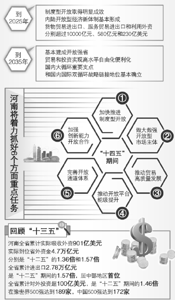 开放的河南更开放,出彩的河南更出彩。不沿边、不靠海、不临江的河南,近年来充分发挥在“中国之中”的区位交通优势,将航空港、自贸区、自创区、跨境电商综试区、大数据综试区等新平台、新载体、新动能收入囊中,空中、网上、陆上、海上“四条丝路”齐头并进,由中国对外开放的跟跑者向内陆开放高地建设的先行者加速转变。当前,河南依然存在开放型经济结构和质量不优,开放平台数量和能级效应不足,产业招商服务水平不高等问题。加快推进制度型开放,是河南实现跳跃式、直联式开放,形成对外开放新优势的关键。“十四五”及今后一个时期河南将以长远的科学谋划、精准的战略布局、因地制宜地探索符合河南发展实际的制度创新成果,不断提高在高质量共建“一带一路”中的参与度、链接度和影响力,锚定“世界之中”全面提升河南枢纽的经济能级和开放通道优势。