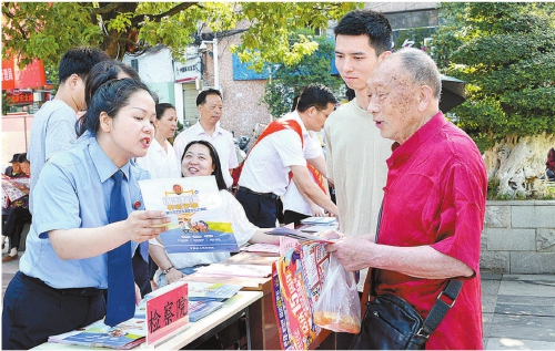 6月15日,湖北省罗田县检察院干警来到该县人民广场开展打击整治养老诈骗宣传活动。活动现场,检察干警围绕养老诈骗的危害性、常见诈骗手段以及识别防范养老诈骗方法等内容开展宣传,引导群众树立防范意识,守好自己的养老钱。 检察日报记者戴小巍 通讯员王章丁摄