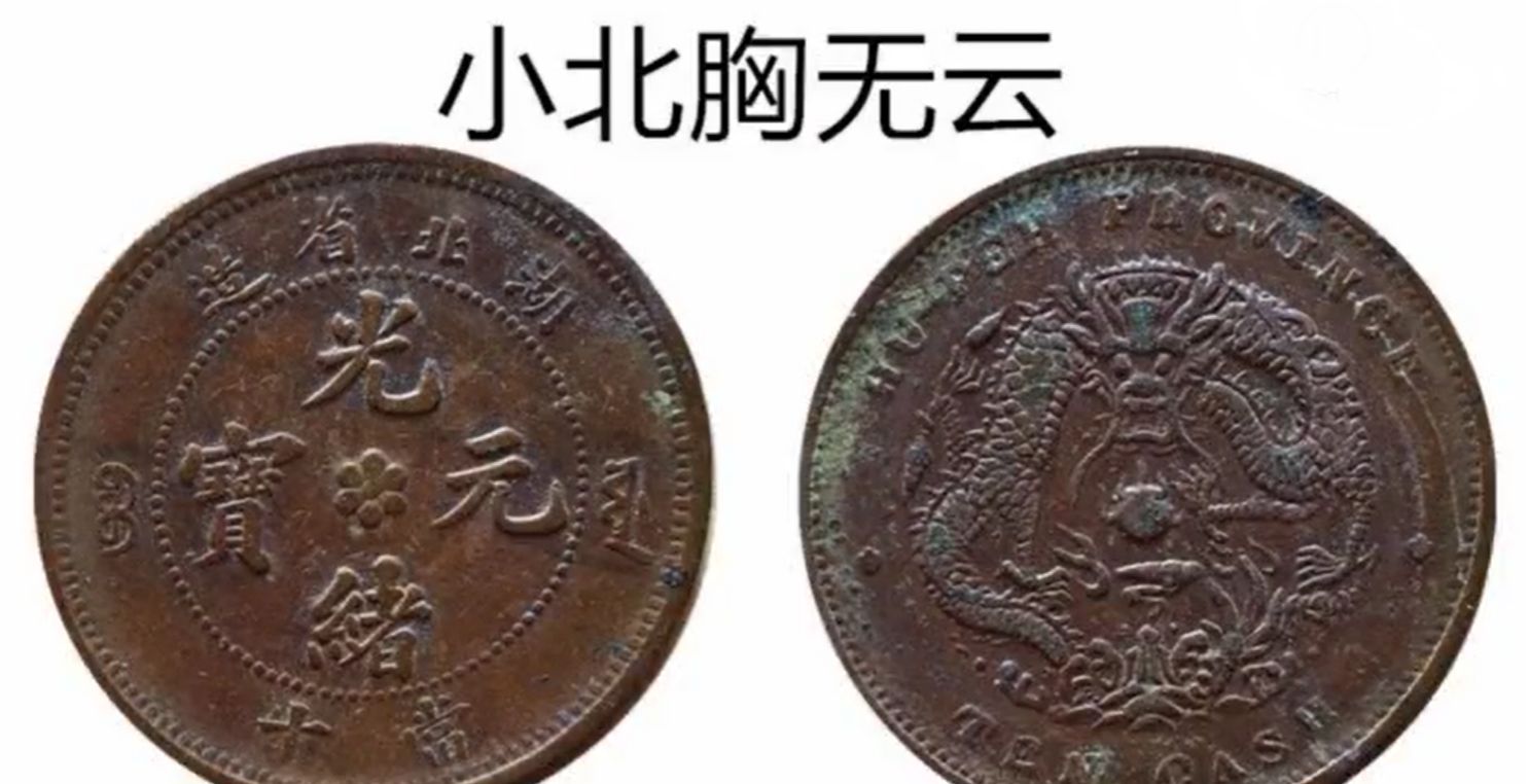 之前在分享六瓣花湖北当十铜圆的时候,其中有一个版叫做胸无云版,胸无云版也是六瓣花系列里面比较容易见到的,但是我们见到的基本上都是正面配小北,背面是胸无云,也就是小北胸无云它在整个胸无云里面占了80%以上。