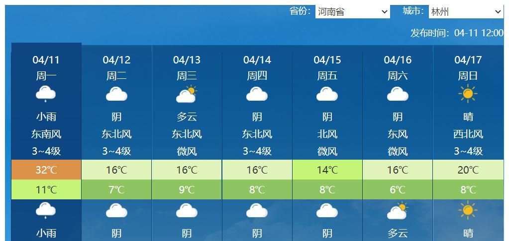 像是昨天刚刚高温破纪录的河南林州,官方预报显示在冷空气攻势下最高气温要直接跌到15度上下,降幅接近20度,最低气温也要跌破10度,堪称“腰斩”级别的剧烈降温。因此,我们提醒各位朋友,短袖要穿,但厚点的衣服也要准备好,这种天气里,感冒风险会大幅增加。