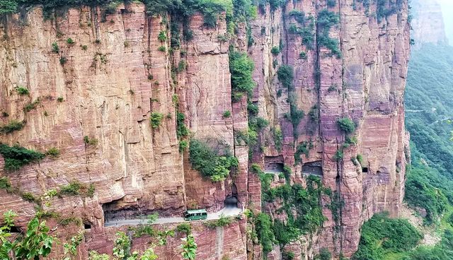 为了能让村中有一条宽阔的道路,在1972年,当地在13名村民的带领一下,毅然决然地开始了轰轰烈烈的修路运动,村内在没有大型机械化设施的情况下,硬是用钢锤铁钎,修造出来一条高5米,宽4米的挂壁公路,而郭亮村也凭借着这条奇特的挂壁公路,而成为了知名的旅游景区。