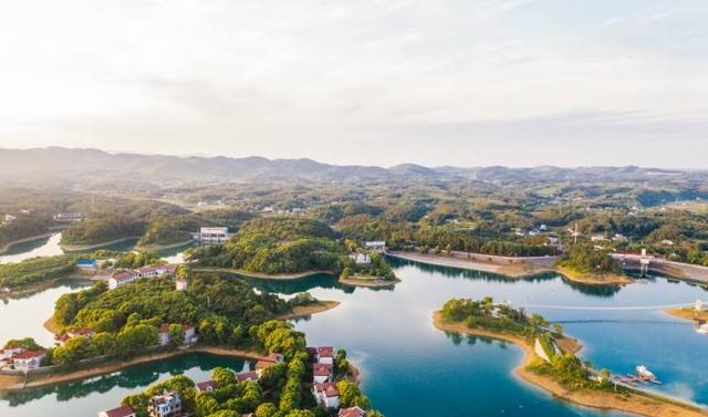 洈水风景区中有一处洈水水库,这座水库也是整个景区重唯一一条人工淡水湖,全长九千米,碧波荡漾的湖面上散落着大大小小的岛屿五百多座,这些岛屿又将这片湖分为了不同的小湖,形成了湖中有岛,岛中有湖的壮观景象。