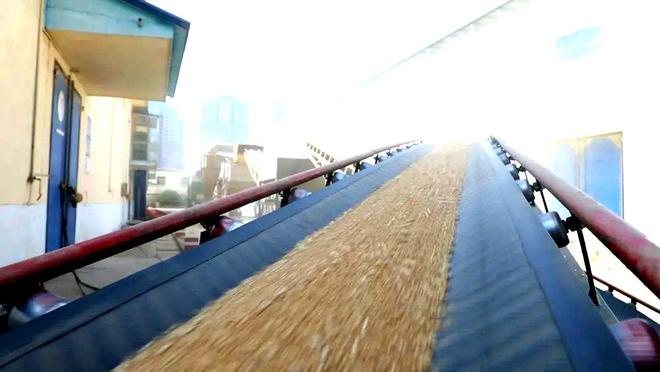 走进粮食储备库,一排排高大平房仓整齐地矗立在眼前。拉粮大货车正井然有序地排队等候检验人员验粮,检验合格的粮食通过传送带源源不断地入库储存。