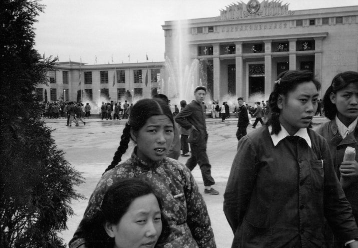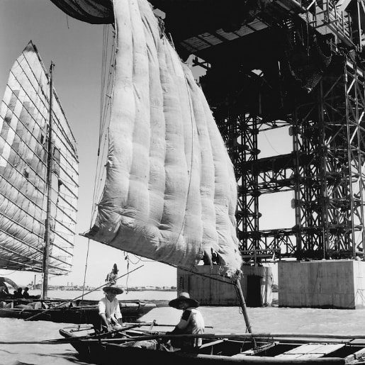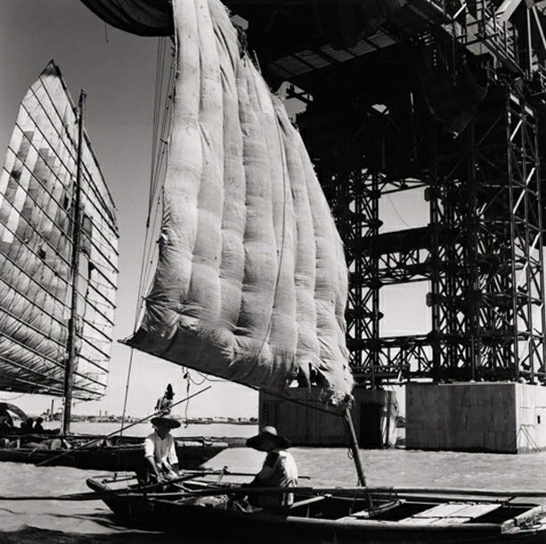 1955年,湖北武汉,武汉长江大桥正在紧张施工建设之中。当年正是中苏友好时期,这项工程就是在苏联专家的帮助下进行的。新西兰摄影师Tom Hutchins汤姆·哈金斯拍摄