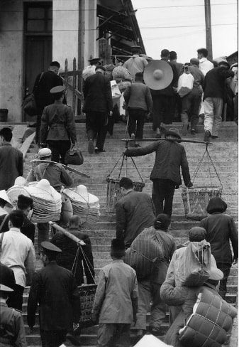 人们在长江口过河后在汉口上堤,当年还没有武汉长江大桥,往来长江两岸都是靠轮渡。