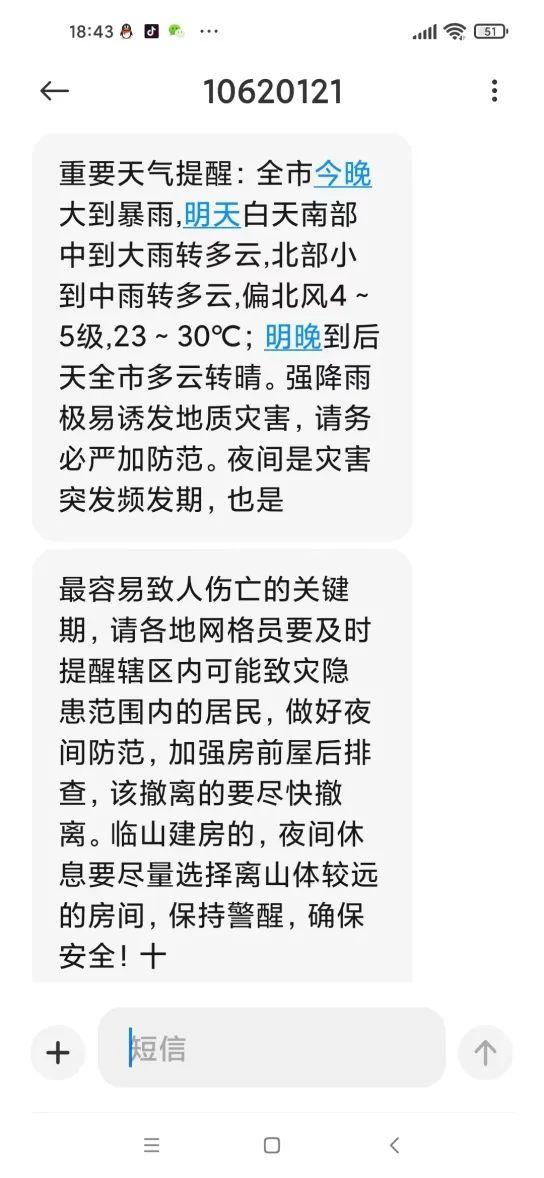 幸好及时转移,不然真不知道会发生啥事!气象部门发的预报预警太准了,这次群众成功避险,离不开你们精准的气象服务!