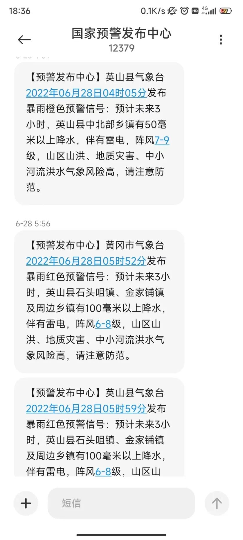 6月28日3时32分,黄冈市气象局业务人员余翔直接向黄冈市应急管理局副局长王国防开展第一次叫应,汇报“英山北部乡镇雷达回波较强,降水效率较大,山洪风险较高”。市气象台6月28日3时53分发布暴雨橙色预警信号,并于5时52分将暴雨预警升级为红色;同时,通过微博、短信等平台及时发布强降雨信息。