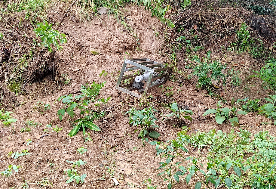 垮塌区域内1台专业监测设备倾倒 图/刘伟