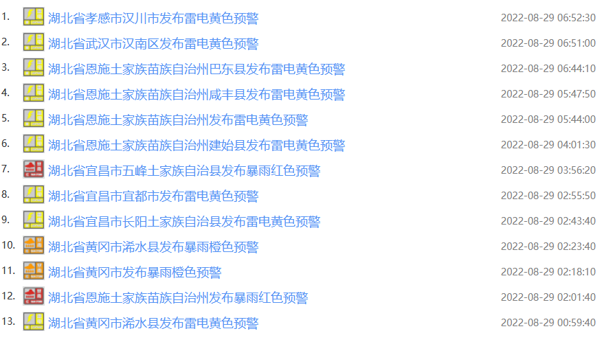 湖北多地发布雷电黄色预警,请注意防范