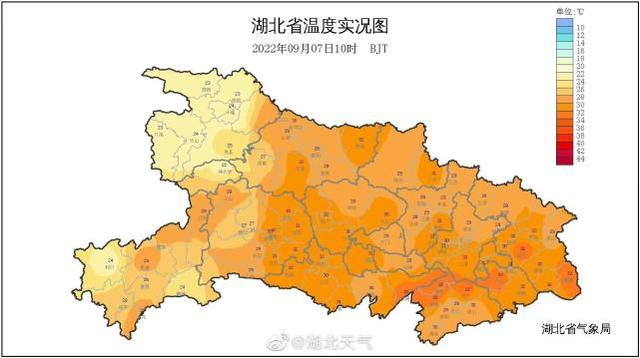 湖北宜昌市气象台2022年09月07日10时03分发布高温橙色预警信号:预计今天白天,宜昌市沿江河谷、低山及平原地区大部乡镇最高气温将升至37℃以上,局部可达39℃以上,请注意防范。